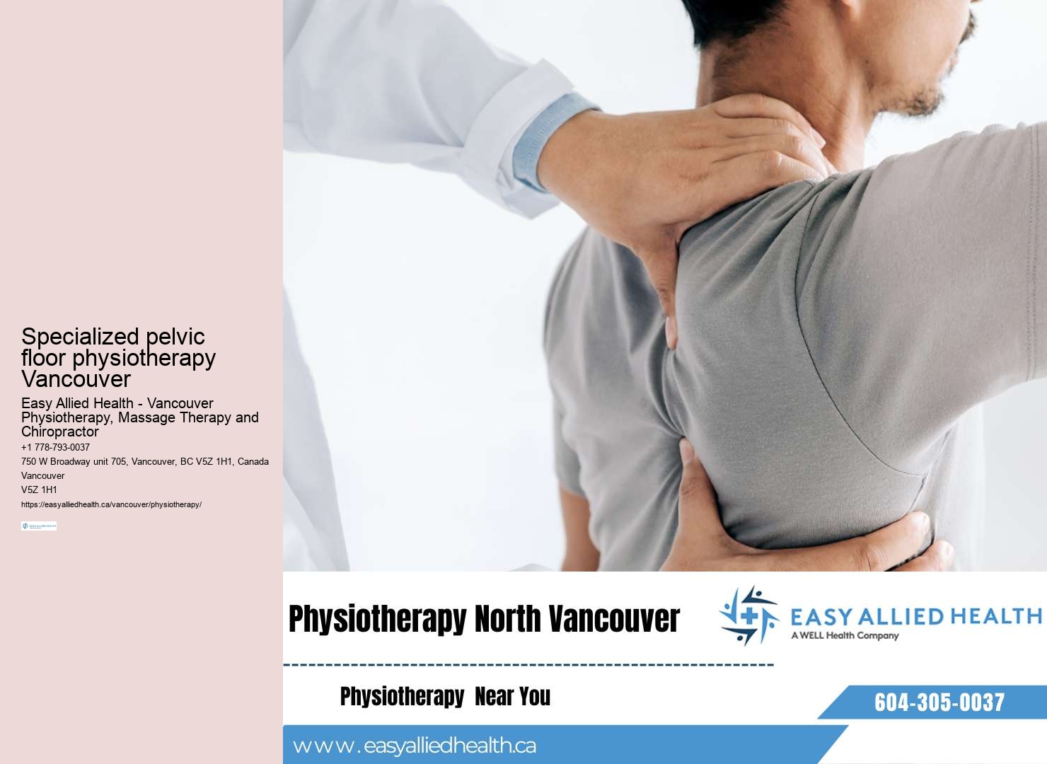 They're keen on educating clients about posture, ergonomics, and daily habits that can influence their overall physical health. Learn more about Easy Allied Health here. Building on their wellness education programs, Easy Allied Health has introduced free community clinics to further support Vancouver's health and wellness. FES uses low-level electrical currents to activate muscles that have become weak or paralyzed due to neurological damage. Myofascial release In essence, getting involved with wellness at Easy Allied Health means more than just attending physiotherapy sessions. Read more about Specialized pelvic floor physiotherapy Vancouver here