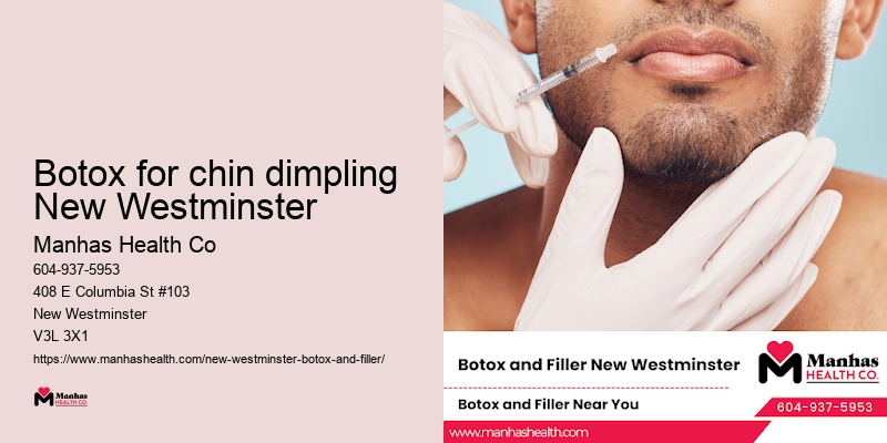 Staying out of the sun and applying sunscreen diligently when outdoors can also preserve your youthful appearance. It's important to have a thorough consultation before your treatment. Located in the heart of Botox for chin dimpling New Westminster, this clinic stands out for its commitment to providing personalized, innovative treatments that cater to your unique needs. There's no downtime required, so you can get back to your day immediately, though it's advised to avoid strenuous activities for the first 24 hours to ensure the Botox settles properly.