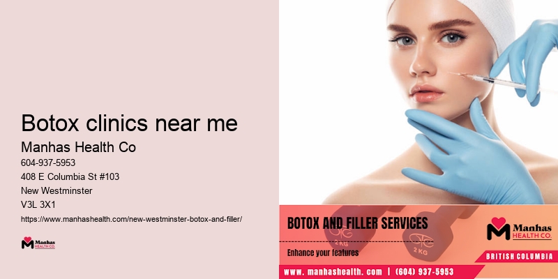 Without this chemical, muscles relax, softening your appearance and giving you that sought-after youthful look. It's not just about the accuracy, though; this technology ensures the Botox is distributed in a way that looks completely natural, avoiding any stiffness or unnatural appearance. Learn more about Manhas Health Co. here. Clicking on this will take you to their booking platform where you can select 'Botox Services'. Wrinkle clinics Afterward, there's no downtime.
